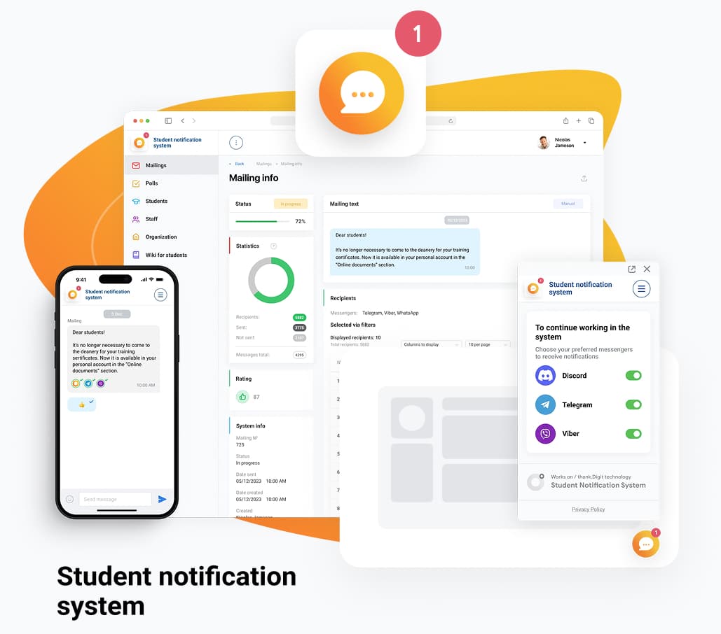By integrating the widget into the profiles of all Student Information Systems, you can unify notifications across all platforms.